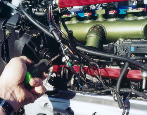 The fuel pump connector is where we pick up one of the 12VDc signals for the water injection harness.