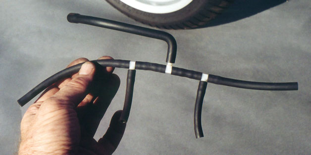 Exiting Hades the two lines pass the gasoline-filled river Styx and skirt the holy coil mount and tuck under the chromed boost aqueduct. Routed atop the fuel feed line they continue on their journey to salvation, tucked behind the fan shroud and up past the radiator cap...to meet their all powerful Dial-A-Boost deity.
