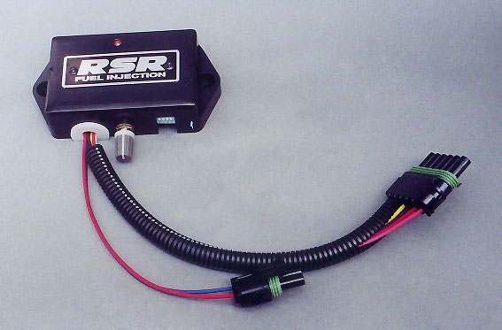 You can select from 4 fuel maps as well as trim the fuel with the grey knob. The RSR AIC400 controls the four additional injectors located in the top of the plenum chamber. There is a red l.e.d. which indicates the injectors are firing. There are over 1200 programmed points with resolutions in the smallest fraction of a millisecond to correctly match the horsepower needs. The four maps with the trim knob will cover any boost or load condition as well as atmospheric/weather condition present. The maps are written so the user cannot choose something "wrong". The unit may be adjusted "on the fly". The hard anodized billet enclosure resists any corrosion.