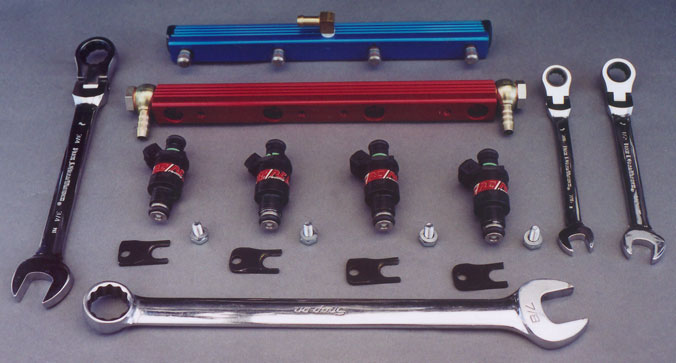 Whenever you deal with injectors and O-rings use a white grease on the injector O-rings. The 4 bolts that hold the injectors to the fuel rail should not be tightened until the final assembly is in place.