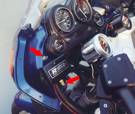 This is the new location for the RSR AIC400 Additional Injector Controller. It is waterproof and in a position for rider adjustment.