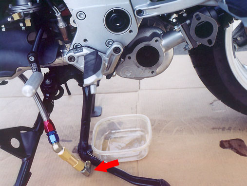 Do not allow the engine to run if the line can "suck" air. Have someone ready to shut the bike off when the oil level drops too low in the pan. Two people required.