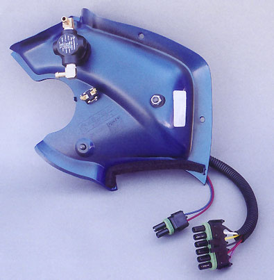 A fast acting 12 VDc bubble-tight solenoid valve is located at the fuel rail to positively stop any water from entering the engine unless the engine is under boost. The water injection pump cannot be activated unless the engine is running and under boost. Water is filtered at each nozzle as well as just before the solenoid so there is no possibility of nozzle clogging.