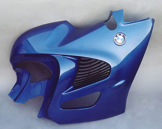 Right side fairing. Using the right front inner panel as a guide you can trace the shape you need to cut tis opening. You will have to install both parts on the bike to trace this hole. We suggest you use a magic marker to draw a line on the parting line of this part and the fairing nose piece. If you do not do this, you are liable to cut the hole too far down and it will be visible from the outside.