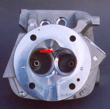 ORCAS take this airflow business seriously because these are nothing but two lunged air compressors with two big inlet valves that have about as much chance of being efficient as a modern Formula 1 engine as does that snowball cruising through hell. ORCAS hate polished ports which grab the air like peanut butter sticks to the roof of your mouth. ORCAS employ roughened ports that emulate their sea dwelling cousins to keep the port speeds high. ORCAS don't use flattened or excessively radiused valves because they either kill the peak flow or compromise the low speed flow. ORCAS employ sophisticated short turn radius trench cut techniques developed in Porsches and NASCAR to increase the flow on the short or inner surface of the port radius. ORCA SA motors staighten out the ports like any modern race engine tries to do...granted the valves aren't set at 10 degrees to the bore, but what the hell, we gotta get them in the frames. Valve seats and angles are decidedly non tricky because they have to survive in the real world where razor thin seats disappear faster than you know who at closing time.
