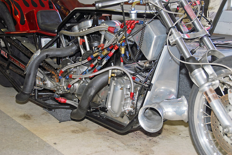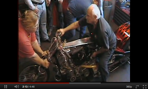 the former 5 time Top Fuel Champion on his supercharged Knucklehead,