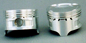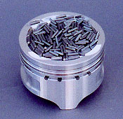 New forged pistons that we developed for the K1200 series are also available for the 70.5mm bore K1100 series motors. These pistons feature a "dished" dome that lower the compression, allowing you to run more boost without the fear of cracking the stock pressure-cast pistons. The pistons come complete with rings and pins and are a direct drop-in. Earlier K100 motors were mildly tuned. It was the K1100 series that upped the horsepower to the 95 hp range with static compression ratios of 11.0:1. These pistons are necessary for K1100 turbo kits. The photo to the right shows the 2mm pins we had to have flown in from Germany to "pin" the second ring. These pistons are lighter than their stock components. Being forged they will deform before they break off chunks that tend to scramble valves and wipe out the rings and score the Nikasil bores. We always raced with forged pistons. Once upon a time we did take a stock K1100RS and run 196mph with 8 psi and stock pistons, but that's a long story.