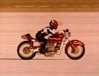 We made one completely illegal 130 mph test of the bike on Long Beach streets, blowing two red lights, told Matt to load it up, without him having ridden it, for the SCTA El Mirage meet. First pass... 206 mph and a record. 309 hp from 980cc.