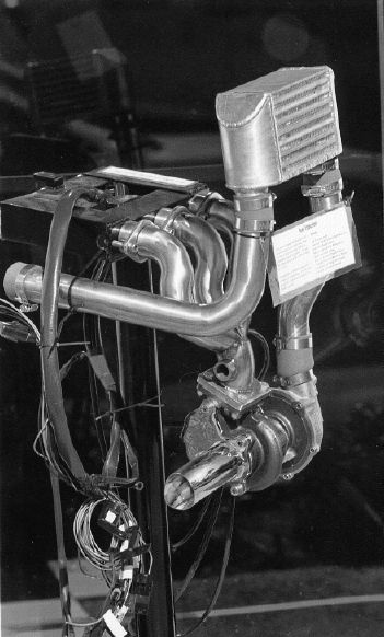 Stainless steel 3-1 header. IHI 225hp turbo. RSR Closed-Loop PC Programmable Fuel Injection. Six fuel injectors. Disappeared after Anaheim Trade show never to be seen again. We got the custom throttle bodies back but the parts pictured here were never seen again. Watch for it at swap meets, the people that had it were known to sell things they hadn't paid for.